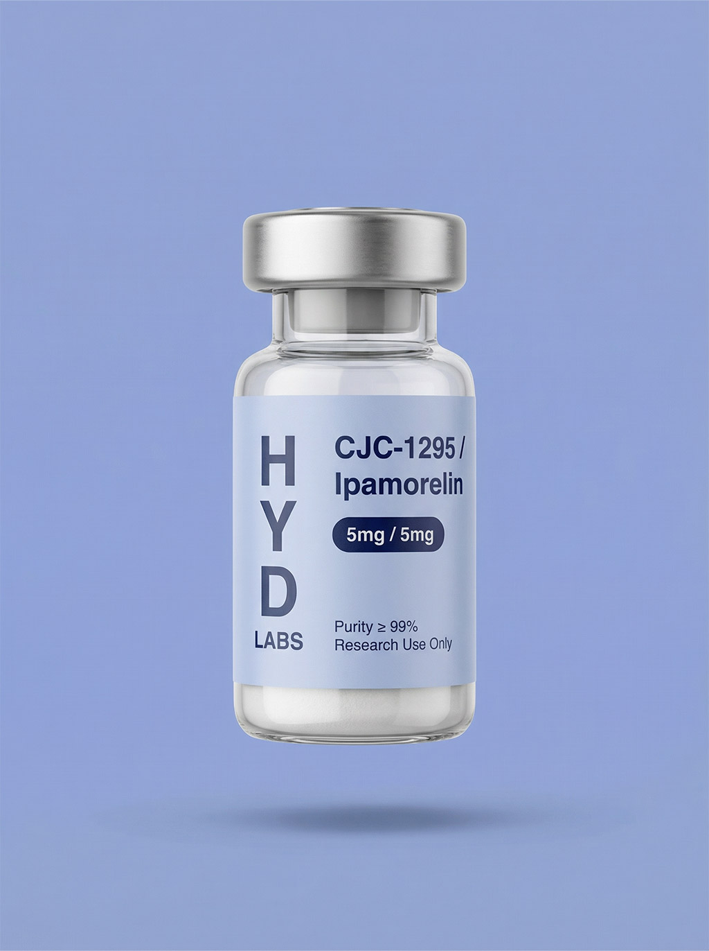 CJC-1295 (No DAC) and Ipamorelin are two peptides commonly studied together for their complementary effects on growth-hormone-related pathways. CJC-1295 is an analog of Growth Hormone–Releasing Hormone (GHRH) and is designed to stimulate the pituitary through GHRH receptors. Ipamorelin, a selective Growth Hormone Secretagogue, acts on a separate receptor family to promote growth hormone release through a ghrelin-mediated pathway.